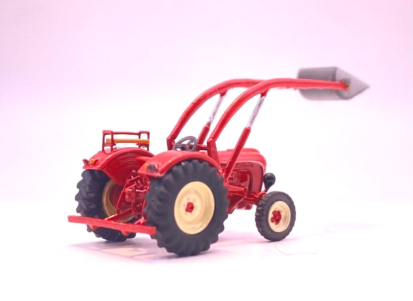 Der Porsche-Diesel „Super“ war der zweitgrößte Schleppertyp, den Porsche-Diesel im Portfolio hatte. Mit seinem luftgekühlten 3-Zylinder Motor, der 38PS generierte, war der formschöne Schlepper für alle landwirtschaftlichen Anforderungen gerüstet. In dieser Version ist der Schlepper mit einem Frontlader mit Schaufel ausgerüstet.