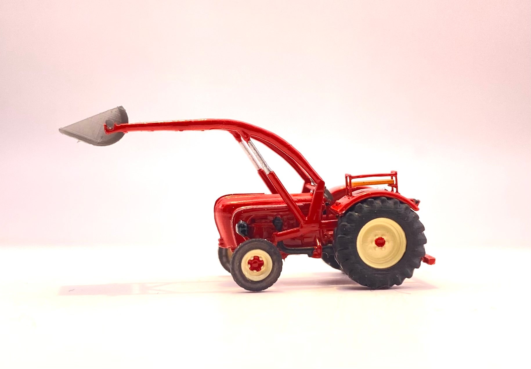 Im N-Modellbahn Maßstab 1:160 eignet sich der Traktor auch sehr gut als Zubehör für die Modellbahn und Dioramen.